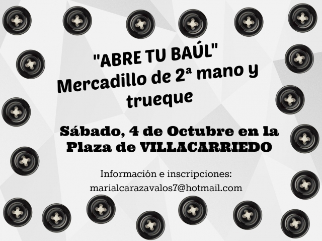 El próximo 4 de octubre, la Plaza Jacobo Roldán Losada de Villacarriedo, acogerá su primer mercadillo de segunda mano, intercambio y trueque, llamado “Abre tu baúl”, y en el que está previsto que todos aquellos vecinos del municipio que quieran poner a venta diversos productos puedan hacerlo.