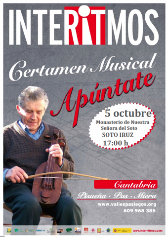 Ya está abierto el plazo de inscripción y se puede apuntar cualquier persona con interés y conocimiento de la música tradicional, sin necesidad de ser profesionales. Aquellas personas interesadas vinculadas a la comarca que componen los municipios de Castañeda, Corvera de Toranzo, Liérganes, Luena, Miera, Penagos, Puente Viesgo, San Pedro del Romeral, San Roque de Ríomiera, Santa María de Cayón, Santiurde de Toranzo, Saro, Selaya, Vega de Pas, Villacarriedo y Villafufre, puede participar poniéndose en contacto con el G.A.L. Pisueña, Pas, Miera. Como premio principal destaca la grabación de las dos mejores interpretaciones que formarán parte de un cd promocional con el resto de representaciones ganadoras de las otras comarcas de España. Para más información www.interritmos.com.