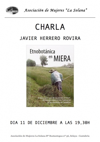 El próximo 11 de diciembre, a partir de las 19:30 horas, la Asociación de Mujeres La Solana organiza la charla presentación del libro “Etnobotánica en Miera”, de Javier Herrera Rovira, donde además se abordarán temas como el conocimiento tradicional de las plantas, sus usos medicinales, alimenticio y para el ganado, entre otros.
