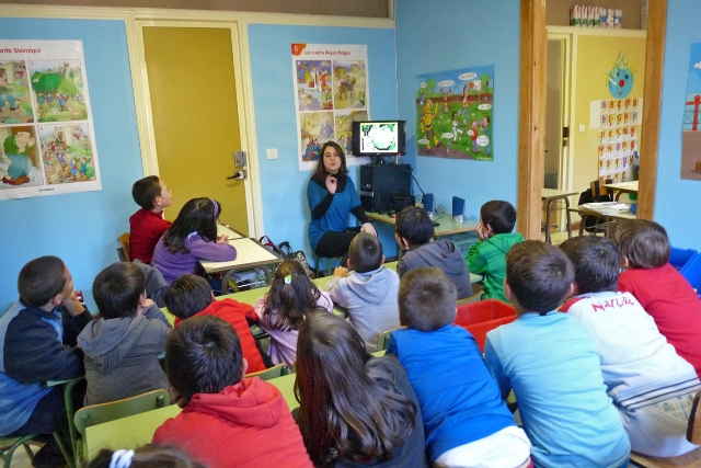 A la primera de estas charlas asistieron todos los alumnos de primer ciclo del Colegio P.P. Escolapios, de Villacarriedo. En esta sesión los sonidos de los animales, captaron toda la atención de los más pequeños.