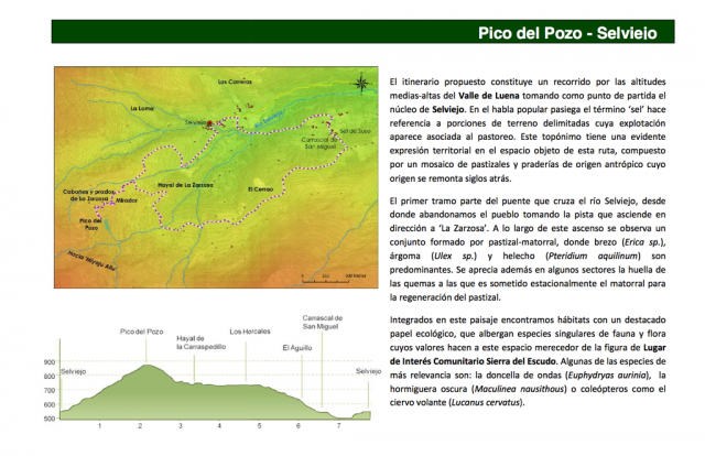 Una de las iniciativas para poner en práctica esta idea es la creación de nuevas rutas de senderismo en el territorio. Para ello se han realizado varias visitas sobre el terreno y se han catalogado todos los recursos naturales, se ha cartografiado la zona y se ha generado la temática de la ruta y los contenidos naturales a destacar en la misma. Además se ha trabajado en la creación de textos y del banco de imágenes. Además las rutas pueden ser encontradas en «Wikiloc».
