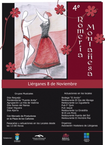 La Asociación de Hostelería de Liérganes, en colaboración con el Ayuntamiento del municipio, Valles Pasiegos, y la Asociación para la Defensa de los Intereses de Cantabria (ADIC), organiza la Cuarta Romería Montañesa el próximo 8 de noviembre con una gran oferta de actividades. En este sentido, se podrá presenciar actuaciones de grupos musicales a partir de las 13:00 horas, pasacalles y un Mercado de Productores en la Plaza de los Cañones.
