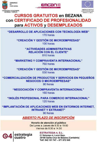 Cursos gratuitos con certificado de profesionalidad para activos y desempleados.