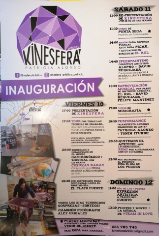 Patricia seguirá con su creación artística que estará disponible en el centro, además de trabajar por encargo en el taller de grabado. Kinesfera es un centro profesional de grabado que otros artistas pueden utilizar y alquilar, bien para realizar su propia obra, o para que los artistas que no manejan bien la técnica, pueden crear el dibujo y encargar la serie de grabado al taller.