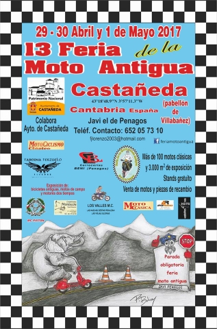 Con la colaboración del Ayuntamiento de Castañeda y de numerosas empresas, entre el próximo 29 de abril y 1 de mayo, tendrá lugar la “13º Feria de la Moto Antigua” que un año más reunirá a más de cien motocicletas clásicas en unos 3000 metros cuadrados de exposición, donde también se podrá visitar numerosos stands, venta de motos, así como adquirir piezas de recambio, entre otros.