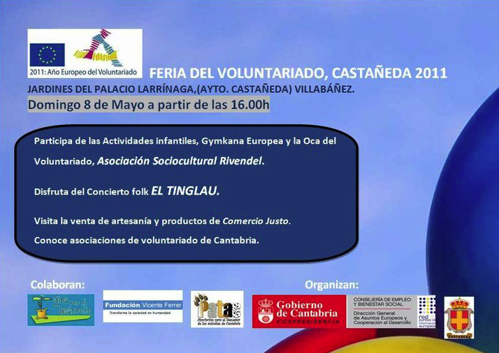 altFeria del Voluntariado 2011 de Castañeda , Este domingo a partir de las 16h de la tarde en los Jardines de Larrinaga, en Villabáñez: talleres infantiles, artesanía, comercio justo, los perrines de PATAS y el concierto de música folk El Tinglau. ¿Te lo vas a perder?