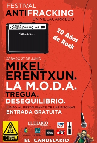 Con el slogan “20 años de rock” y con el objetivo de continuar apoyando iniciativas ligadas a concienciar sobre los riesgos vinculados a la prospección de gas no convencional mediante la técnica de fractura hidráulica, el próximo sábado 27 de junio tendrá lugar un concierto en las inmediaciones del Restaurante Las Piscinas a partir de las 22:00 horas.