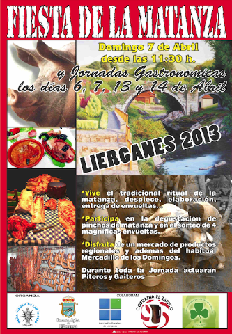 El próximo domingo 7 de abril, a partir de las 11:30 horas, tendrá lugar en Liérganes la Fiesta de la Matanza que incluirá el tradicional ritual que engloba el despiece, la elaboración de productos derivados del cerdo, así como la entrega de envueltas, entre otras actividades. Asimismo, y como complemento durante los días 6, 7, 13 y 14, se desarrollarán unas Jornadas Gastronómicas donde todos aquellos que se acerquen hasta el municipio podrán acceder a una amplia carta con platos elaborados en base a este animal. Los restaurantes participantes son: La Giraldilla, La Puerta del Sol, El Hombre Pez, El Ojo del Abrego y La Juguetería.