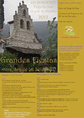 Cartel-definitivoVega de Pas celebra este fin de semana las Fiestas de Nuestra Señora de la Soledad, durante los días 13 y 14 de octubre. Para agasajar a la Virgen como se merece, la organización ha dispuesto varias actividades entre las que destacan el Concurso de Bolo Pasiegos, el Certamen de Ollas Ferroviarias y degustación de unas 1.000 raciones de cocido montañés.
