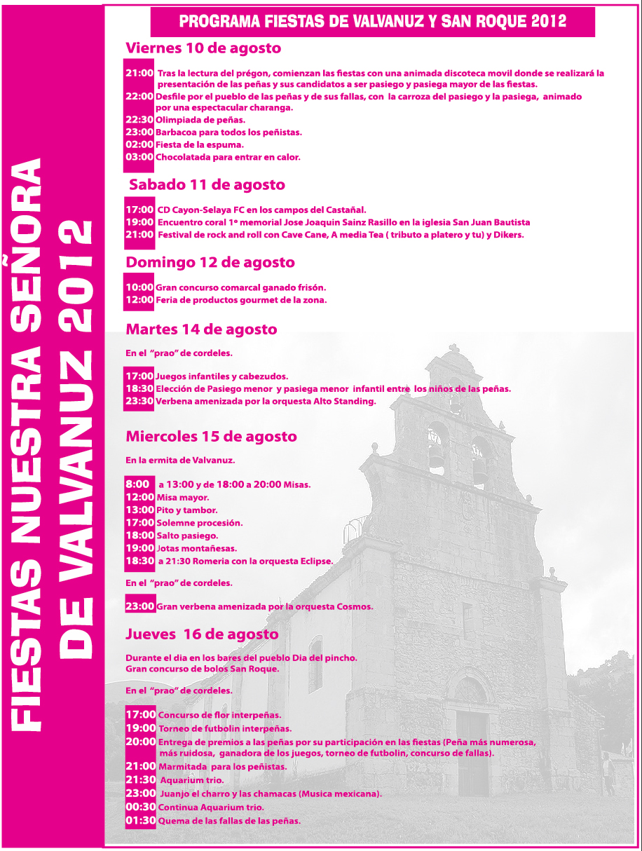 La Festividad más entrañable para los pasiegos es sin duda la fiesta de la Virgen de Valvanuz, que se celebra en Selaya en honor a la patrona de esta comunidad pasiega. La fiesta tiene lugar el 15 de agosto, fecha en la que multitud de personas se acercan hasta el Santuario de la Virgen, para pasar el día en comunidad compartiendo comida, juegos y risas.