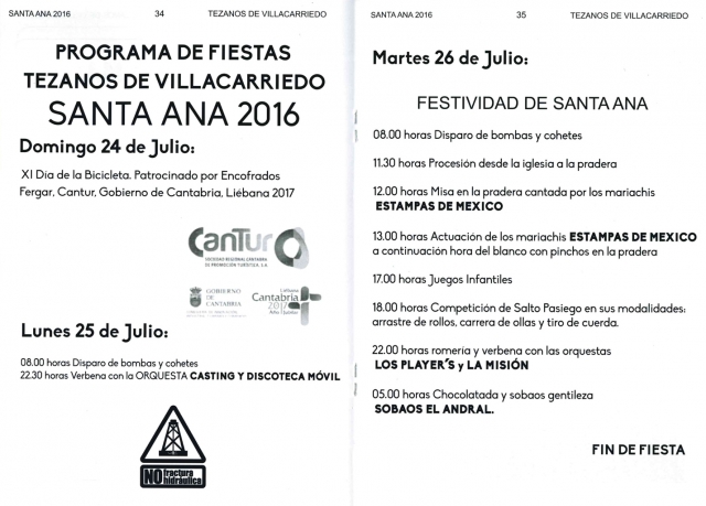 Tezanos de Villacarriedo celebra los días 24, 25 y 26 de julio la fiestas de Santa Ana 2016, que como año reunirán a un gran número de asistentes dispuestos a disfrutar de la buena música y las tradiciones en esta bella localidad.