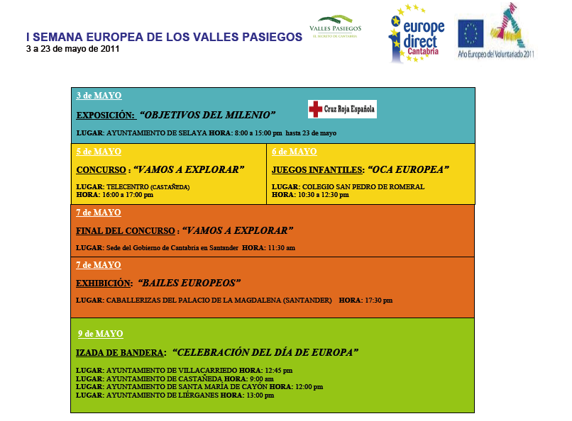 ACTIVIDADESPROGRAMADAS PIEVALLES PASIEGOS Y DG ASUNTOS EUROPEOS