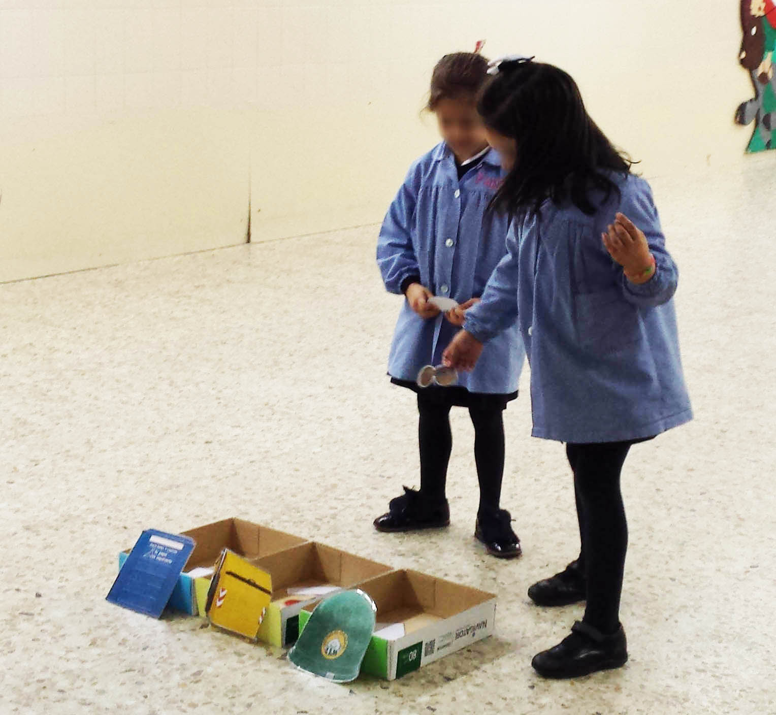 El taller sobre residuos iba orientado a que aprendieran las nociones básicas de reciclaje de residuos. Tras una pequeña presentación del tema, leyeron un cuento sobre la regla de las 3R (reducir, reciclar, reutilizar) y posteriormente realizaron un juego con unos recortables para asentar el conocimiento de los contenedores y los residuos que llevan asociados, en el que los niños tenían que recoger los residuos esparcidos por el aula y depositarlos en los contenedores fabricados para la ocasión.