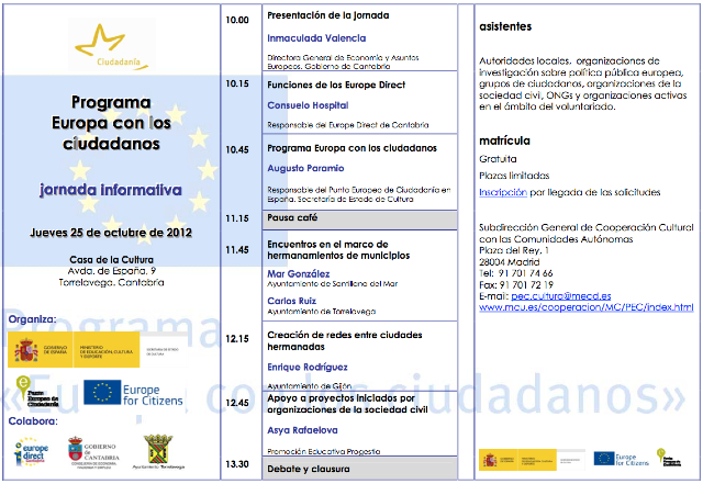 La Oficina de Asuntos Europeos/Europe Direct del Gobierno de Cantabria invita a participar de una jornada informativa sobre el Programa Europa con los Ciudadanos, organizada por el Punto Europeo de Ciudadanía.
