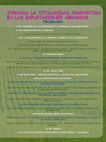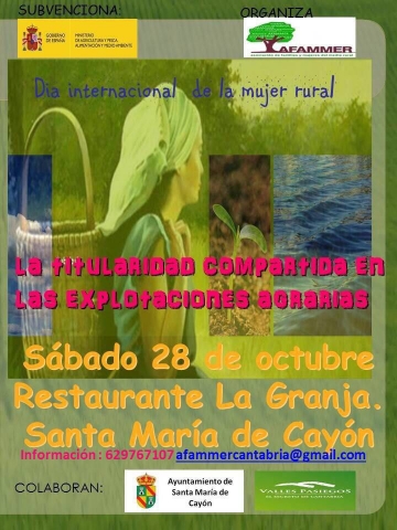 IMG 7761Con motivo de la celebración del día internacional de la mujer rural, la organización AFAMMER Cantabria, organiza una jornada sobre la Titularidad Compartida en las Explotaciones Agrarias, que se llevará a cabo el próximo sábado 28 en el restaurante La Granja.