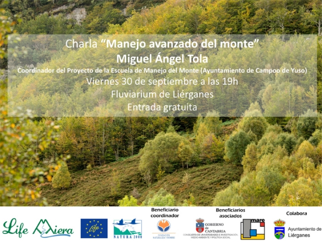 El próximo viernes 30 de septiembre LIFE Miera organiza una charla sobre el manejo del monte con entrada gratuita, será en el Fluviarium de Liérganes a las 19h. Miguel Ángel Tola, coordinador del Proyecto de la Escuela de Manejo del Monte del Ayuntamiento Campoo de Yuso, será el encargado de explicar los retos, soluciones y mejores ejemplos de Europa en gestión forestal moderna compatible con nuestro patrimonio natural.