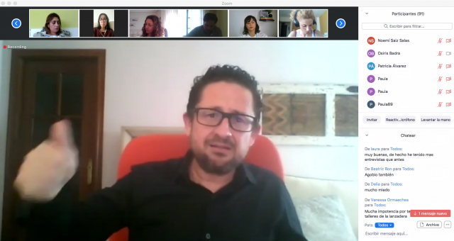 Estaba previsto que David Barreda, como experto en procesos de aprendizaje, visitara Cantabria para tener una formación con todas las Lanzaderas de Cantabria sobre el diseño de la propuesta de valor profesional, generando una marca de interés para clientes y/o empresarios/as. Pero la situación del estado de alarma truncó esta formación programada, y esta visita se ha hecho vía streaming y de manera solidaria por parte de David.