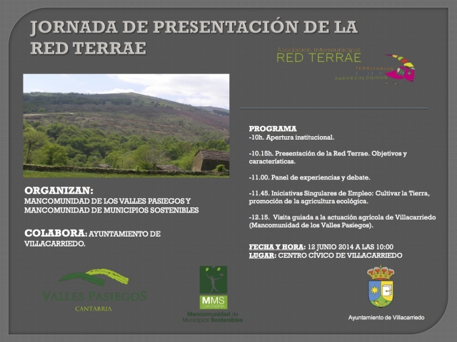 TerraeEl Centro Cívico de Villacarriedo acogerá este jueves, 12 de junio, una jornada informativa para presentar la Red Terrae, o Red de Tierras (Asociación Intermunicipal Territorios Reserva Agroecológicos) a toda la población interesada en conocer esta iniciativa.