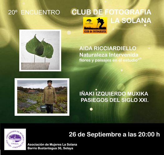 La Asociación de Mujeres La Solana, de Selaya, organiza dentro de su Club de Fotografía, el XX Encuentro que en esta oportunidad tendrá como protagonistas a Iñaki Izquierdo Muxika, que expondrá “Pasiegos del siglo XXI”, y también con Aída Ricciardiello con “Naturaleza intervenida, flores y paisajes en el estudio”.