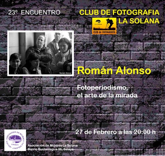 La Asociación de Mujeres “La Solana” organiza a través de su Club de Fotografía el XXIII Encuentro, que en esta oportunidad tendrá como protagonista a Román Alonso con una muestra titulada “Fotoperiodismo; el arte de la mirada”.